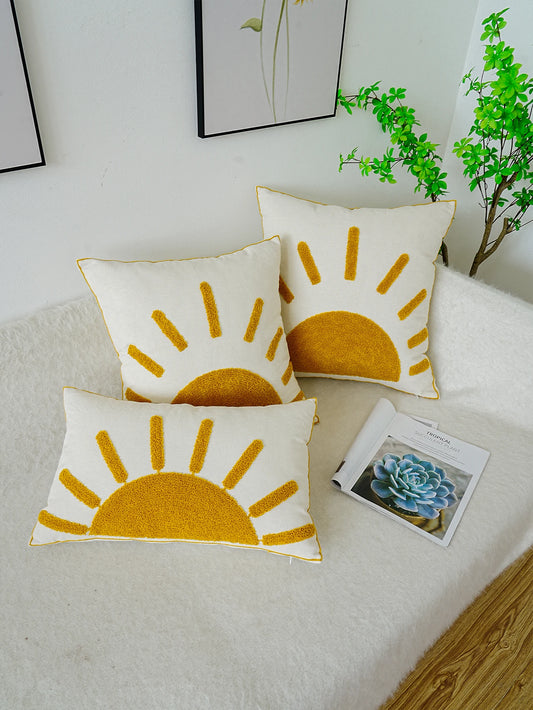 Boho Home Decor Yellow Sun Tufted Embroidered Pillowcase – Decorative Throw Pillow Cover For Living Room