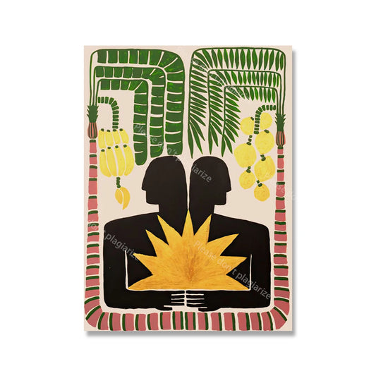 Colorful Abstract Boho Wall Art – Two People Holding Sun Canvas Print