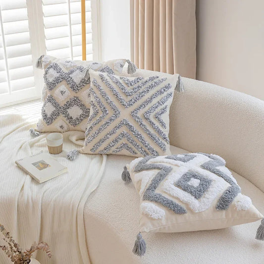 Nordic Geometric Tufted Cushion Cover Cotton Canvas Tassel Pillowcase Living Room Floor Pillow Cover Decorative Sofa Home Decor