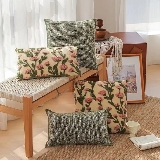 Embroidered Flower Throw Pillow Covers – Boho Cotton Cushion Covers for Bed, Sofa & Home Decor (30x50cm / 45x45cm)