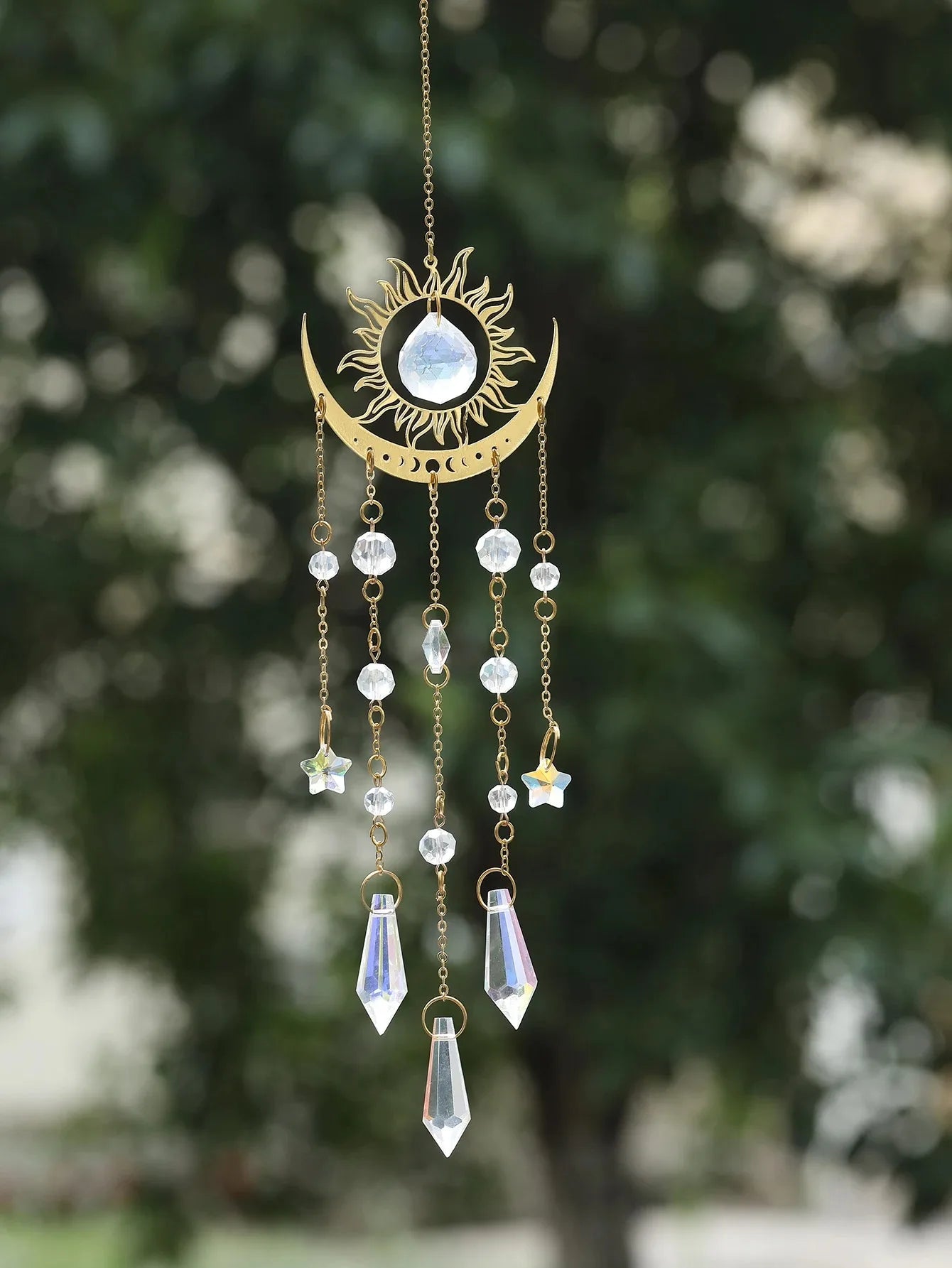 β¨ Gold Flame Moon Crystal Suncatcher β Outdoor Hanging Ornament for Garden & Window Decor
