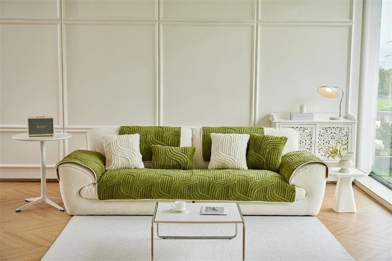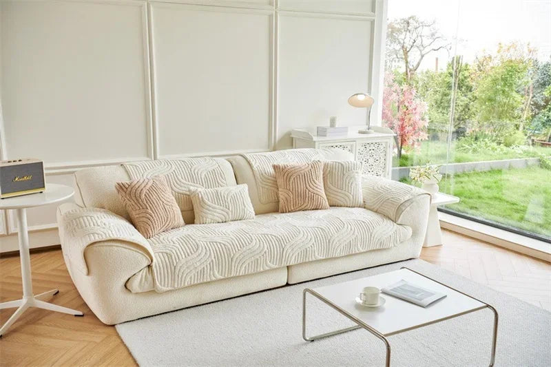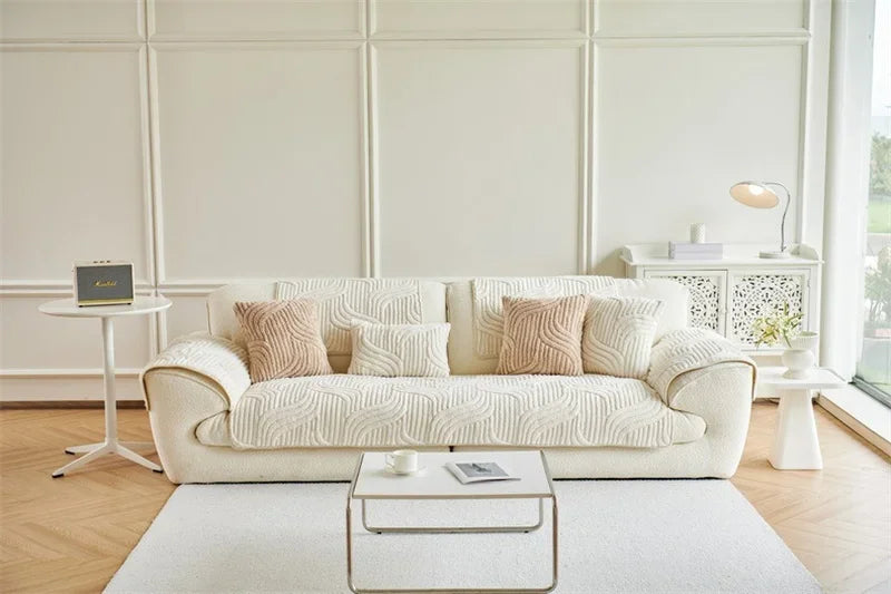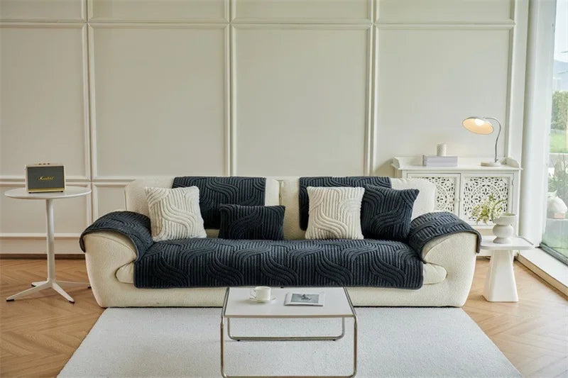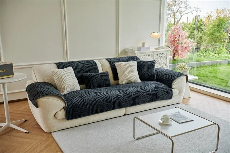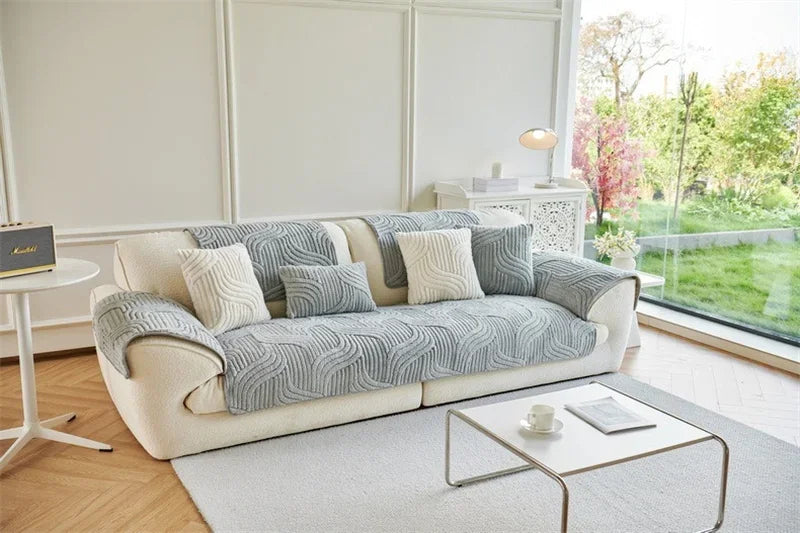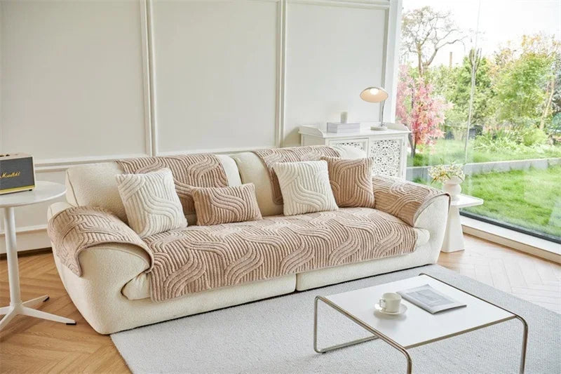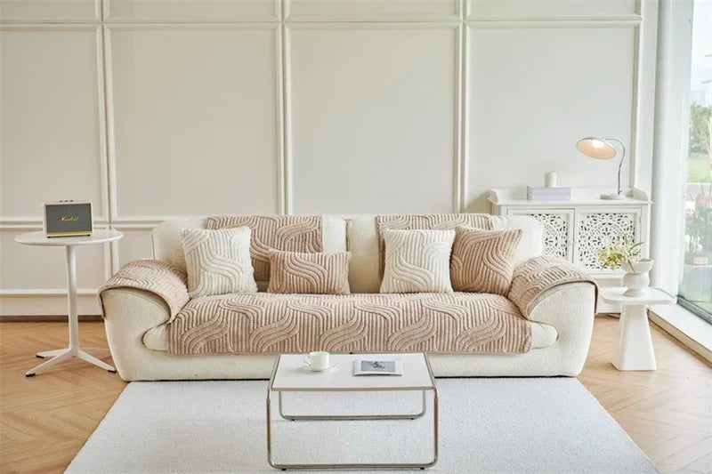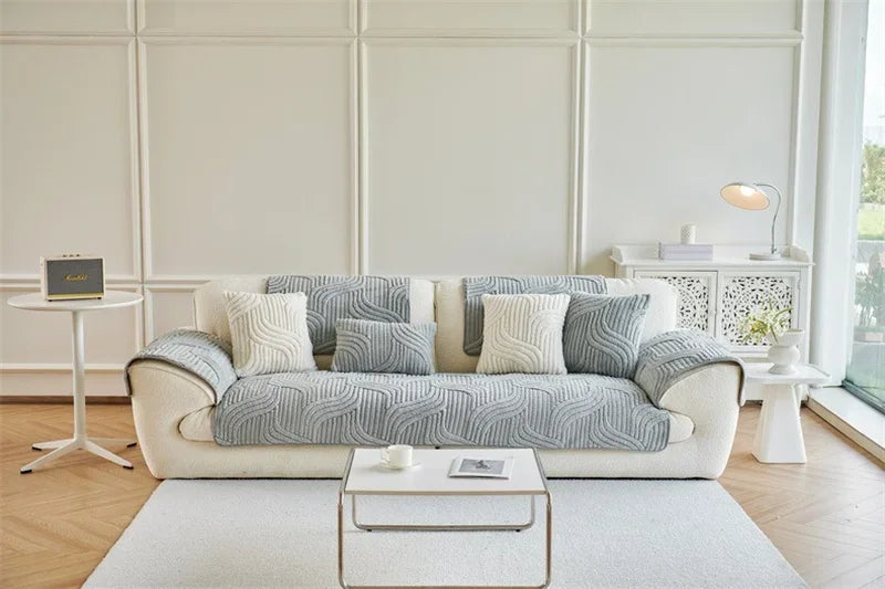 1PC Wave Striped Sofa Cover Solid Color Thicken Plush Sofa Towel Covers Non-slip Couch Slipcovers Sofa Mat for Living Room