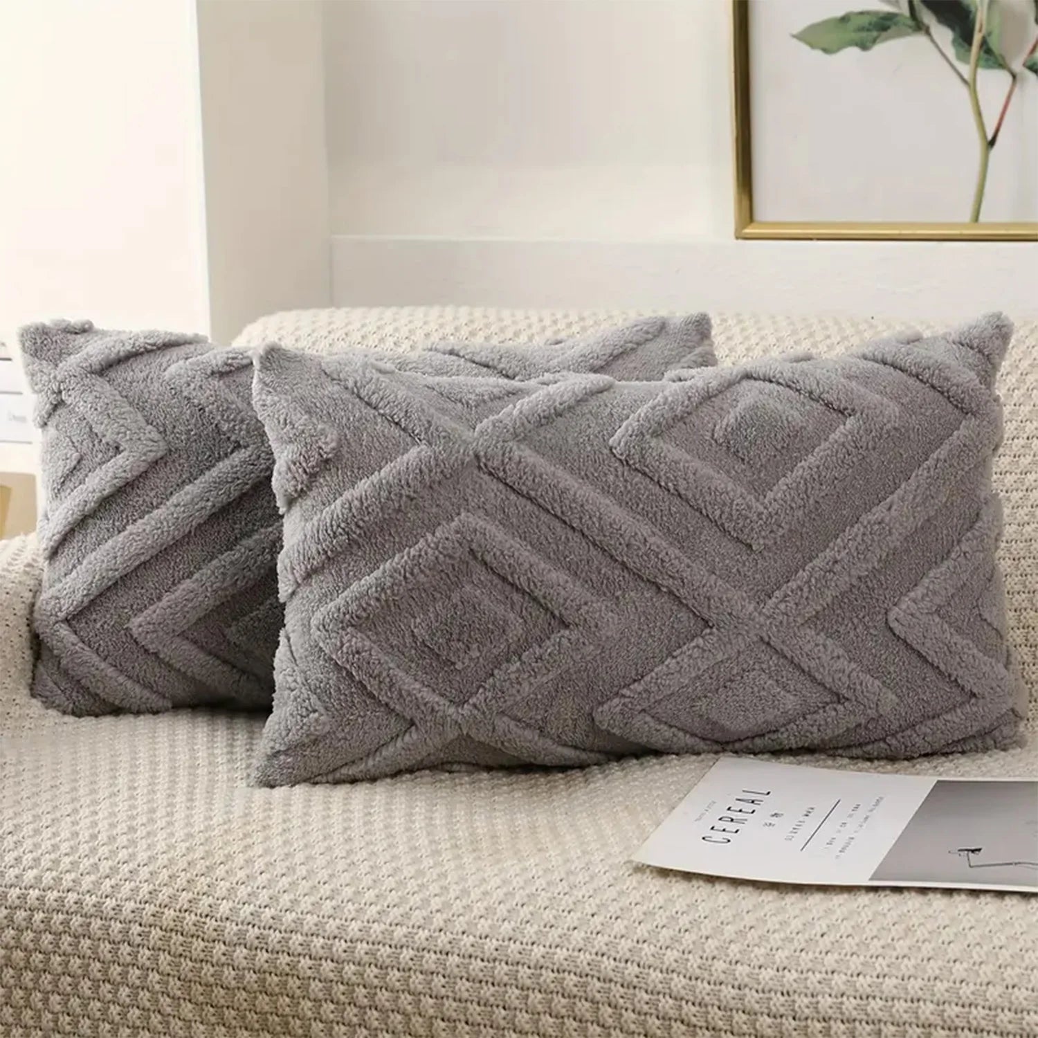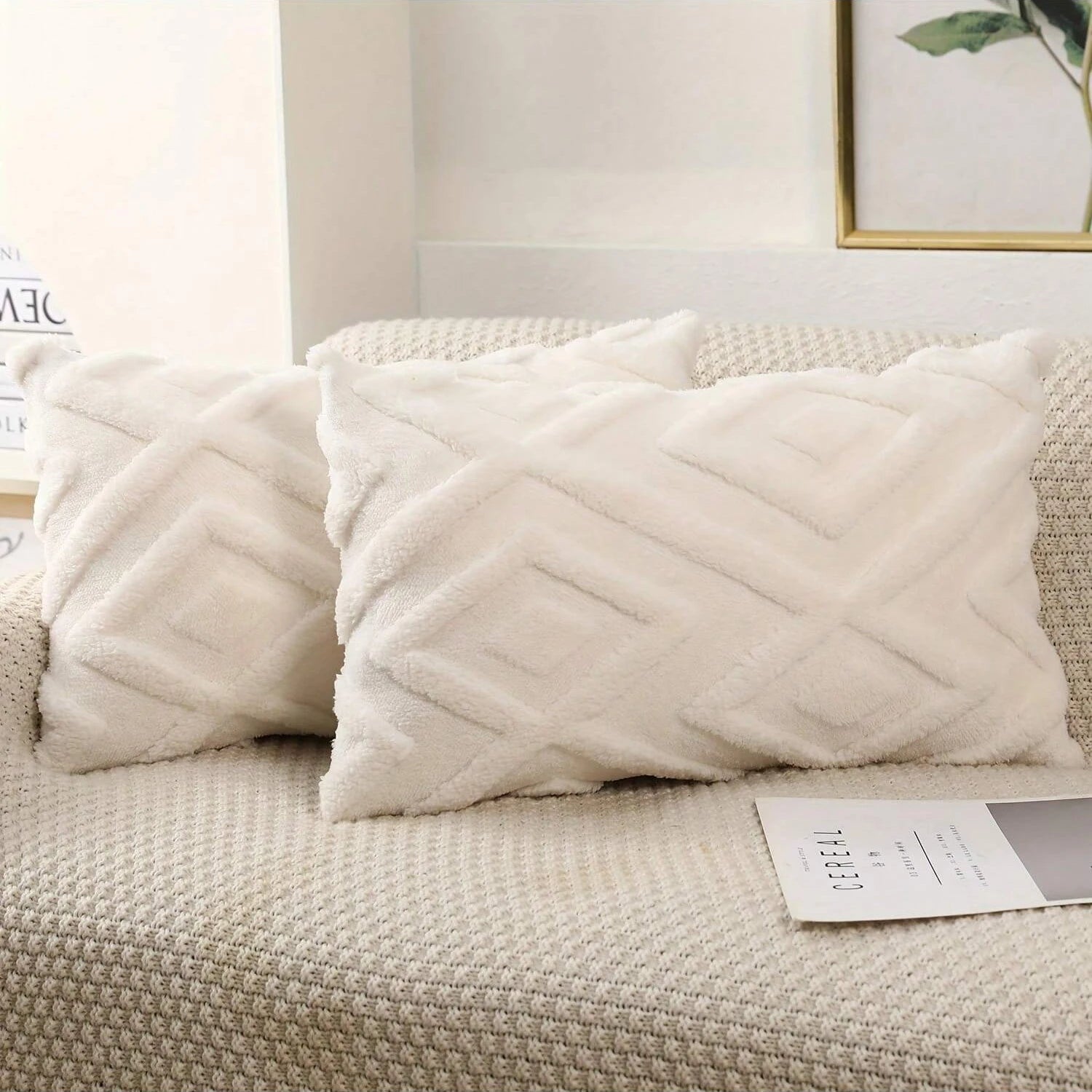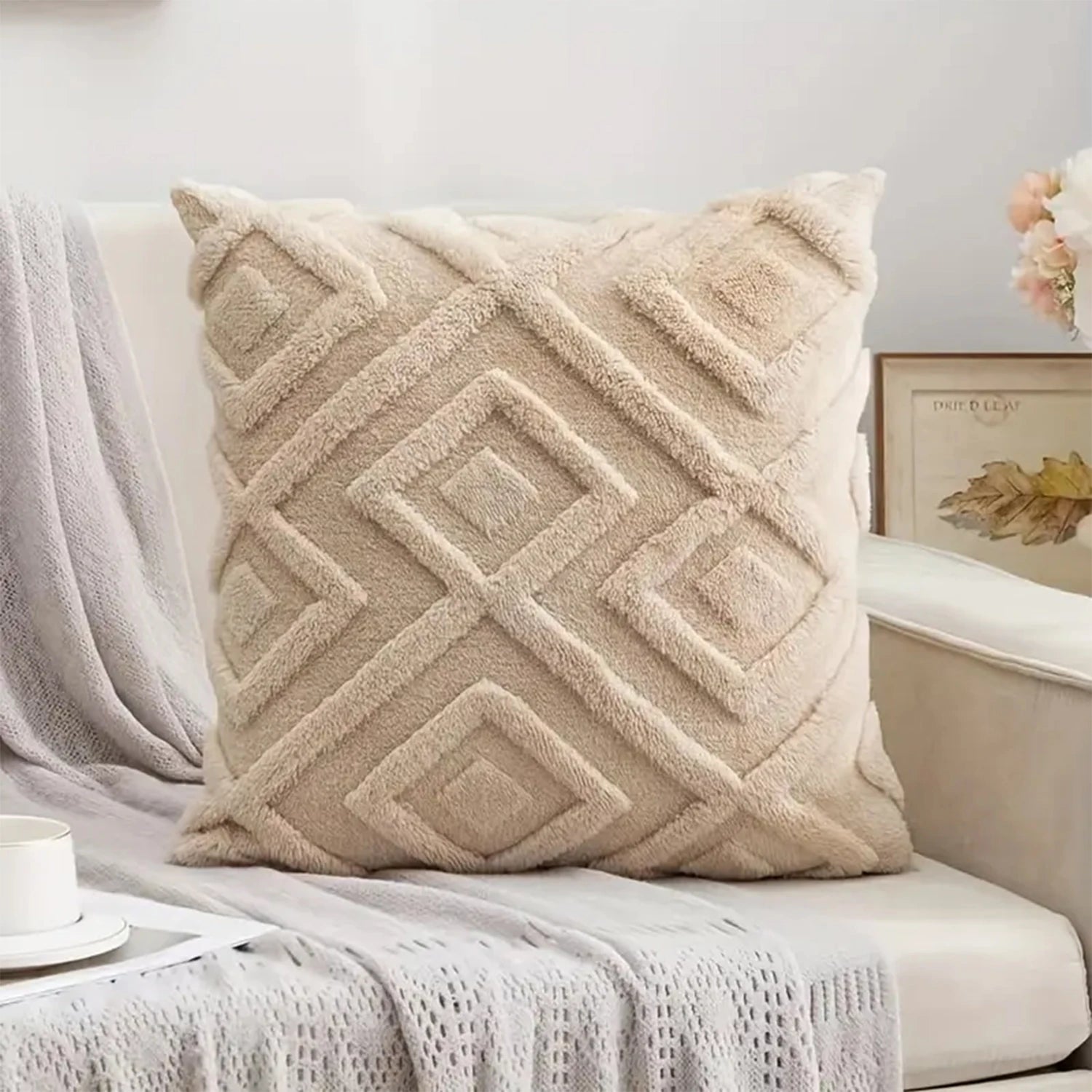 𧸠Boho Faux Wool Geometric Pillow Covers â Soft Plush Fleece Cushion Cases for Cozy Home Decor | Multiple Sizes