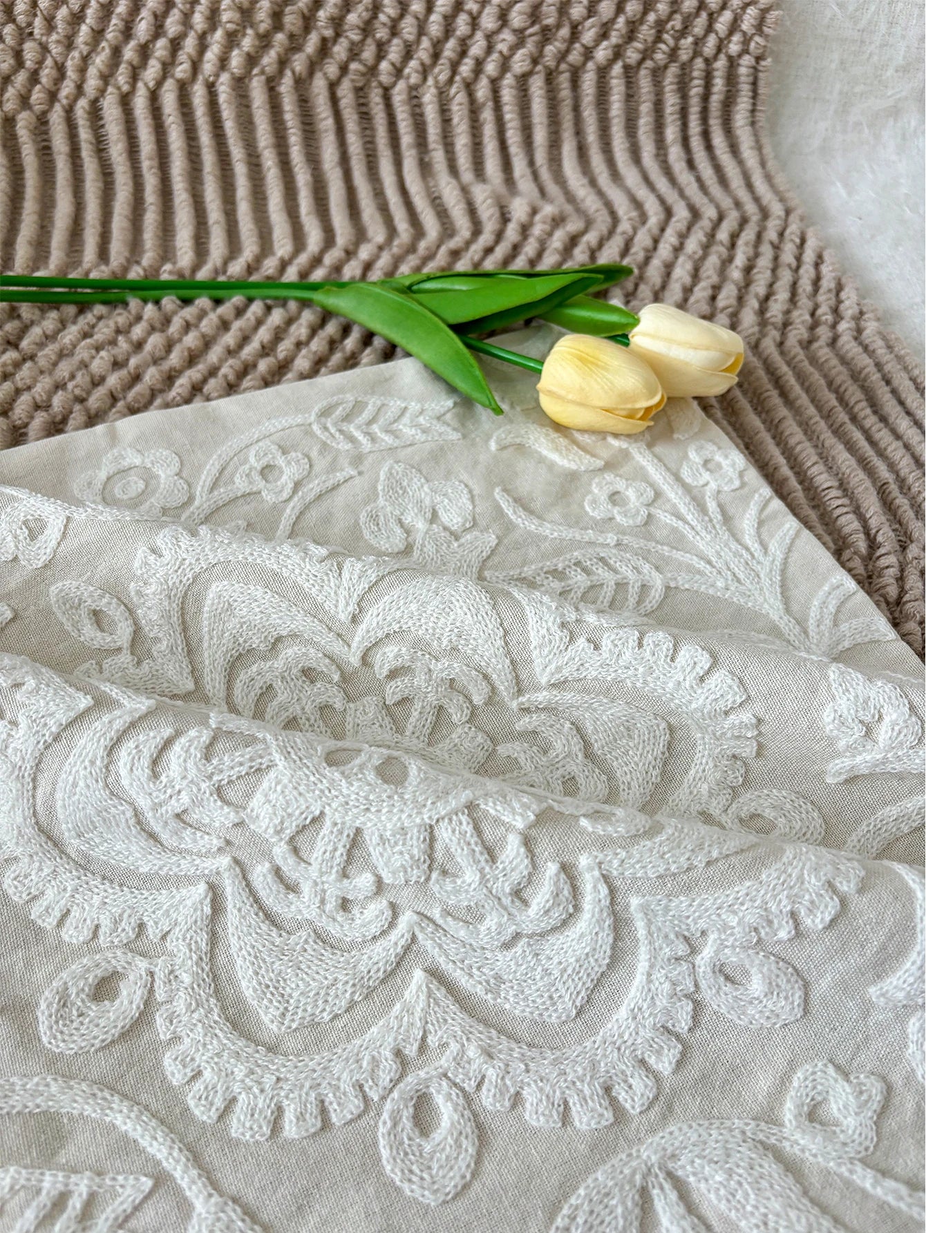 Boho Mandala Embroidered Throw Pillow Cover – Floral Accent Cushion Case for Sofa, Couch, or Bed