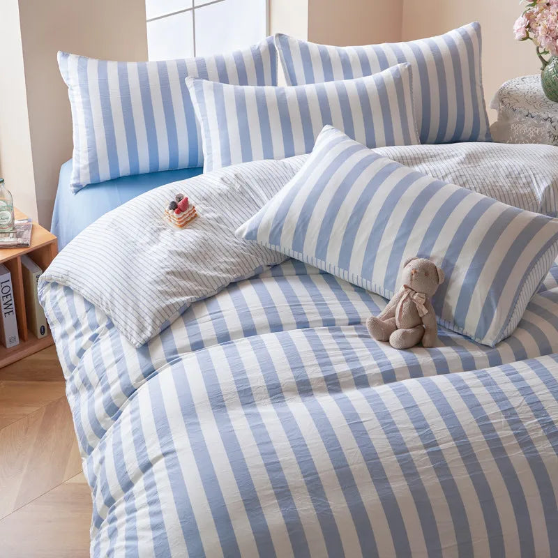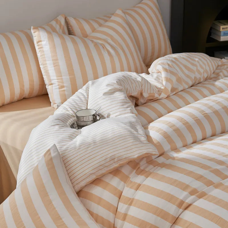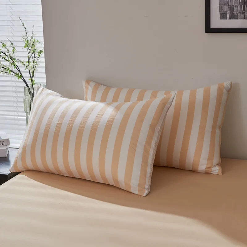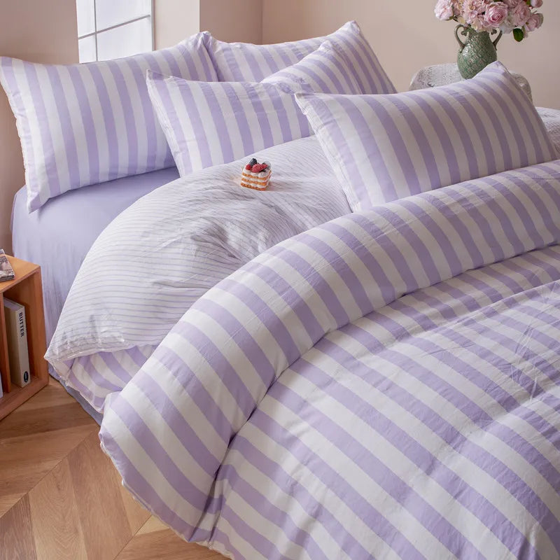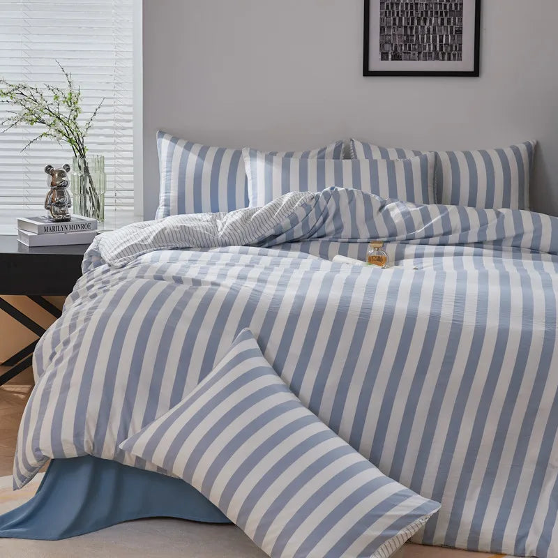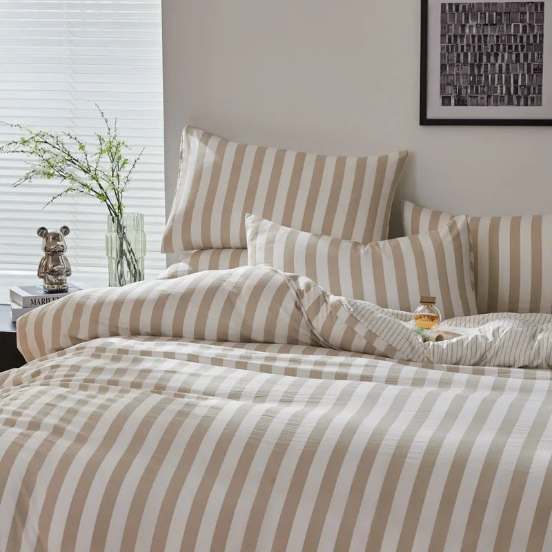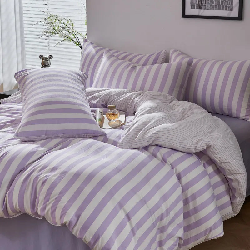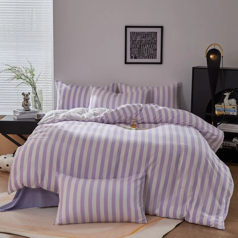 Add a vibrant and cozy touch to your bedroom with this Boho Striped Microfiber Bedding Set. Designed for ultimate comfort, this 4-piece set includes a soft duvet cover with a hidden zipper, a breathable flat sheet, and two matching pillowcases. Crafted from high-quality microfiber fabric, this set is lightweight yet durable, with a smooth twill weavethat feels luxuriously soft against your skin.