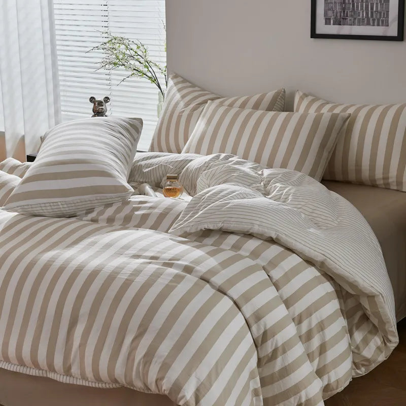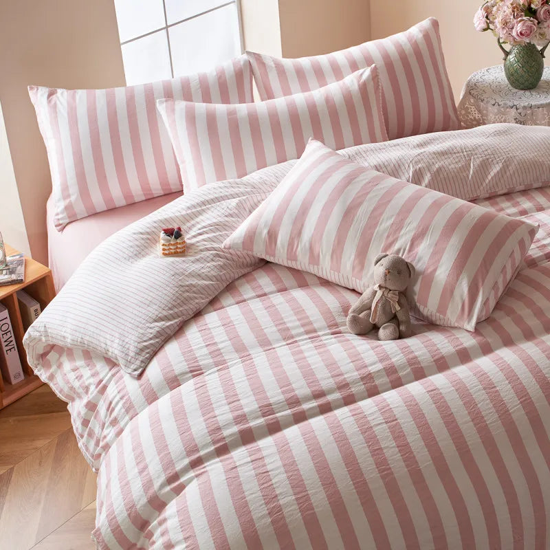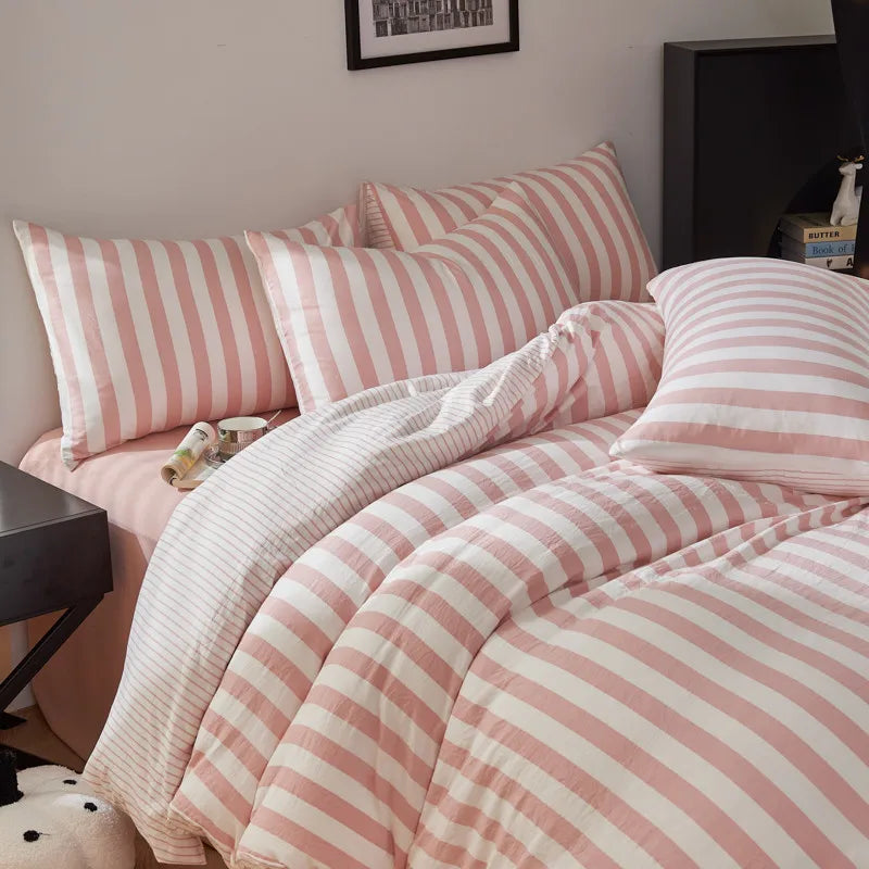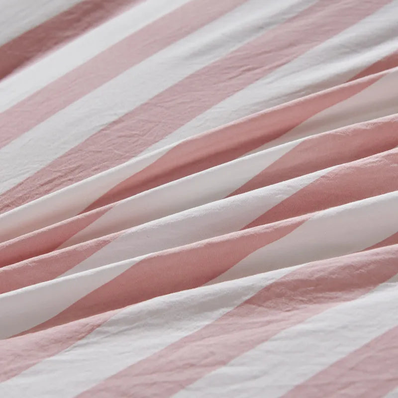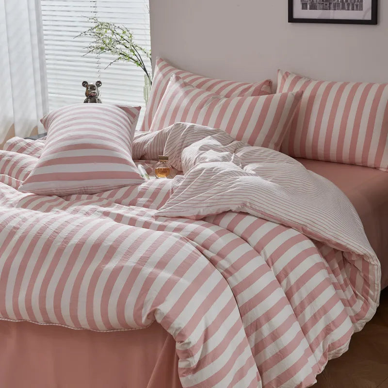 Boho Striped Microfiber Bedding Set – 4-Piece Soft & Cozy Duvet Cover Set with Pillowcases & Flat Sheet - Rose