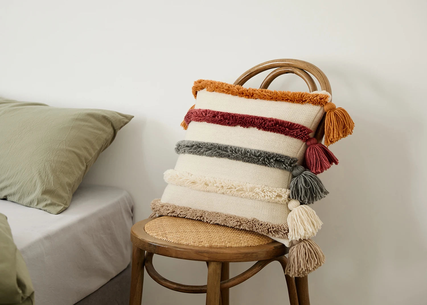 Create a warm and inviting ambiance with this boho-inspired tufted cushion cover, perfect for layering textures in any space!