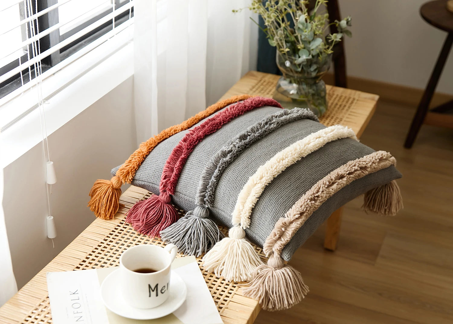 Add a touch of boho charm to your space with this vibrant tufted cushion cover, featuring a knitted jacquard designwith textured stripes and tassels for a cozy, artisanal feel. Crafted from high-quality acrylic, this decorative pillow cover is both soft and durable, making it perfect for everyday use.