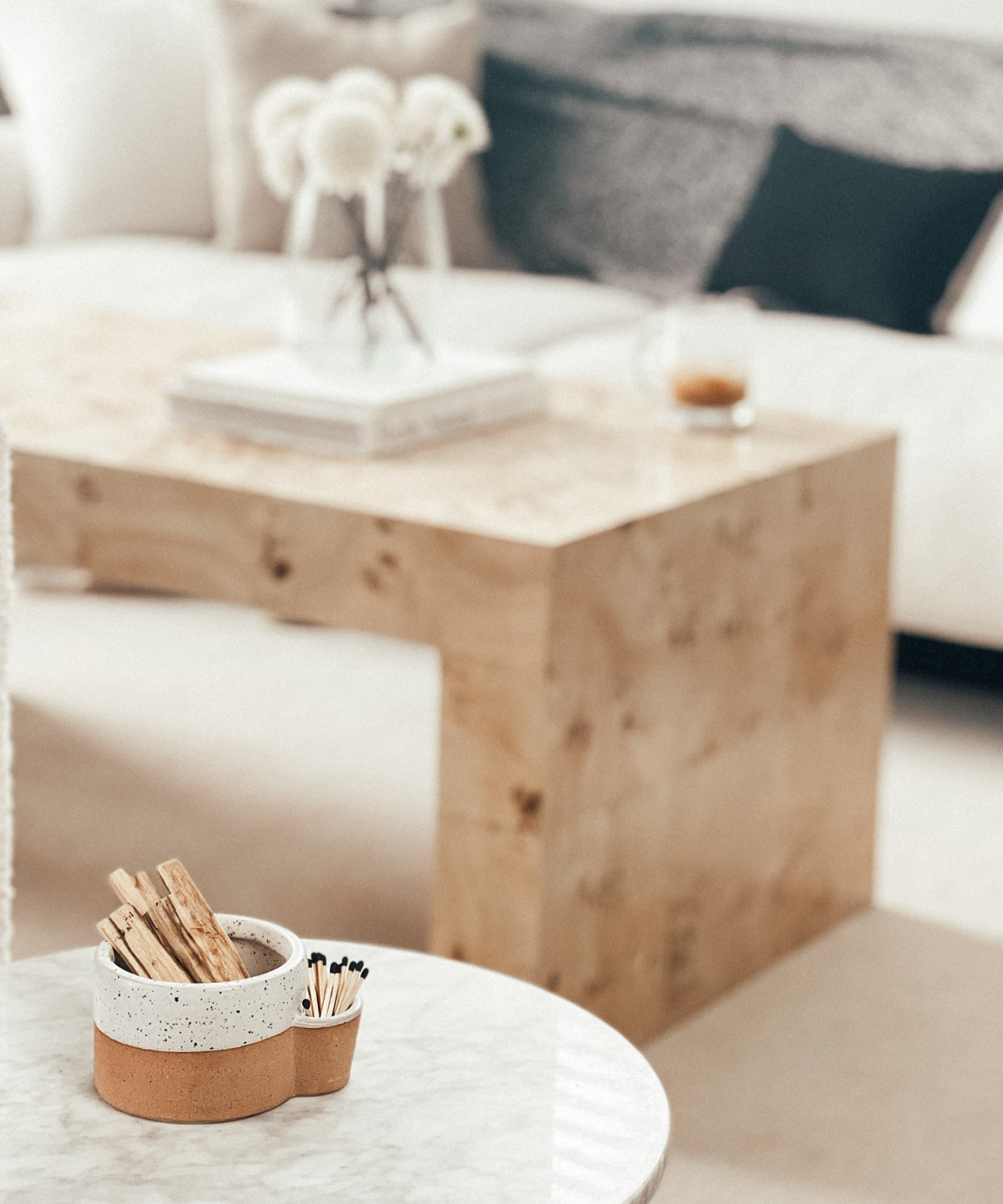 The days of digging around in the recesses of cutlery drawer to find matches are behind you. Weaving together raw terracotta and speckled white glaze, this ceramic bowl displays your Palo Santo as well as matches or lighter keeping everything together while adding a classic element to your home décor.