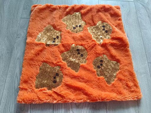Halloween Pumpkin Gold Sequin Embroidered Plush Pillow Cover – Festive Throw Cushion for Sofa, Bed & Autumn Decor