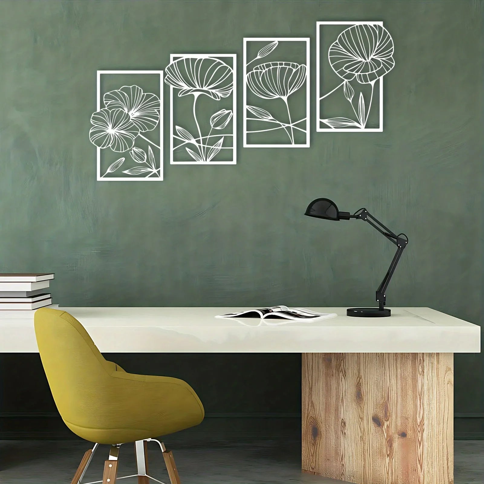 Metal Lotus Line Art Wall Decor – 4-Piece Set