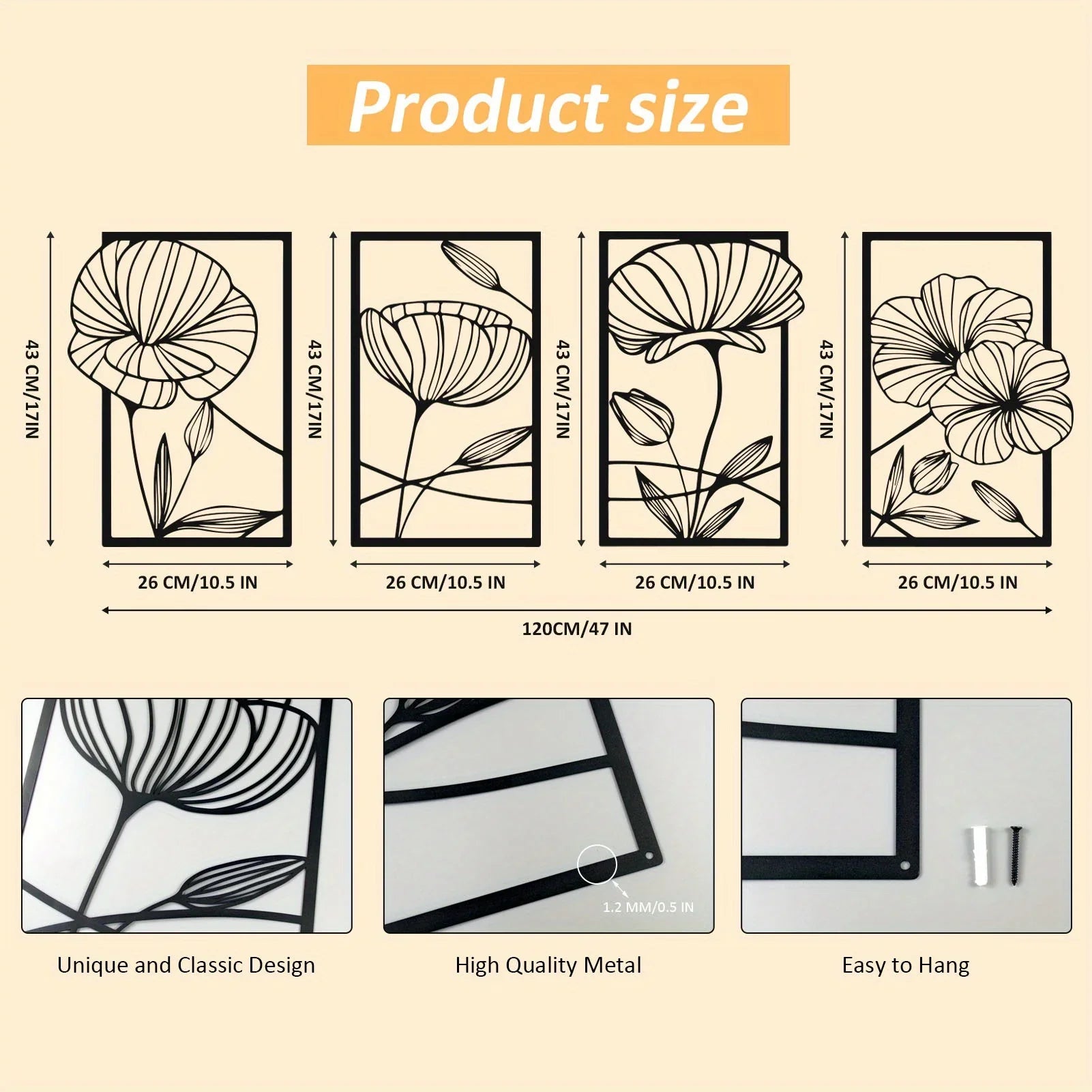 4 × Metal Lotus Line Art Panels (hanging hardware not included)