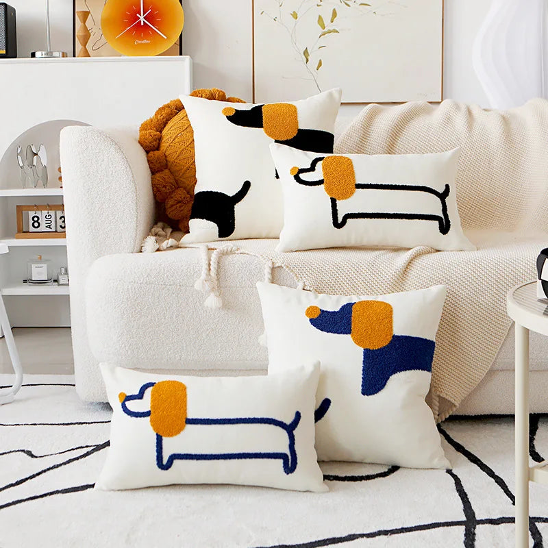 Modern Embroidered Dog Pillow Cover – Cute Animal Cushion Case for Sofa or Bed | Boho Home Decor