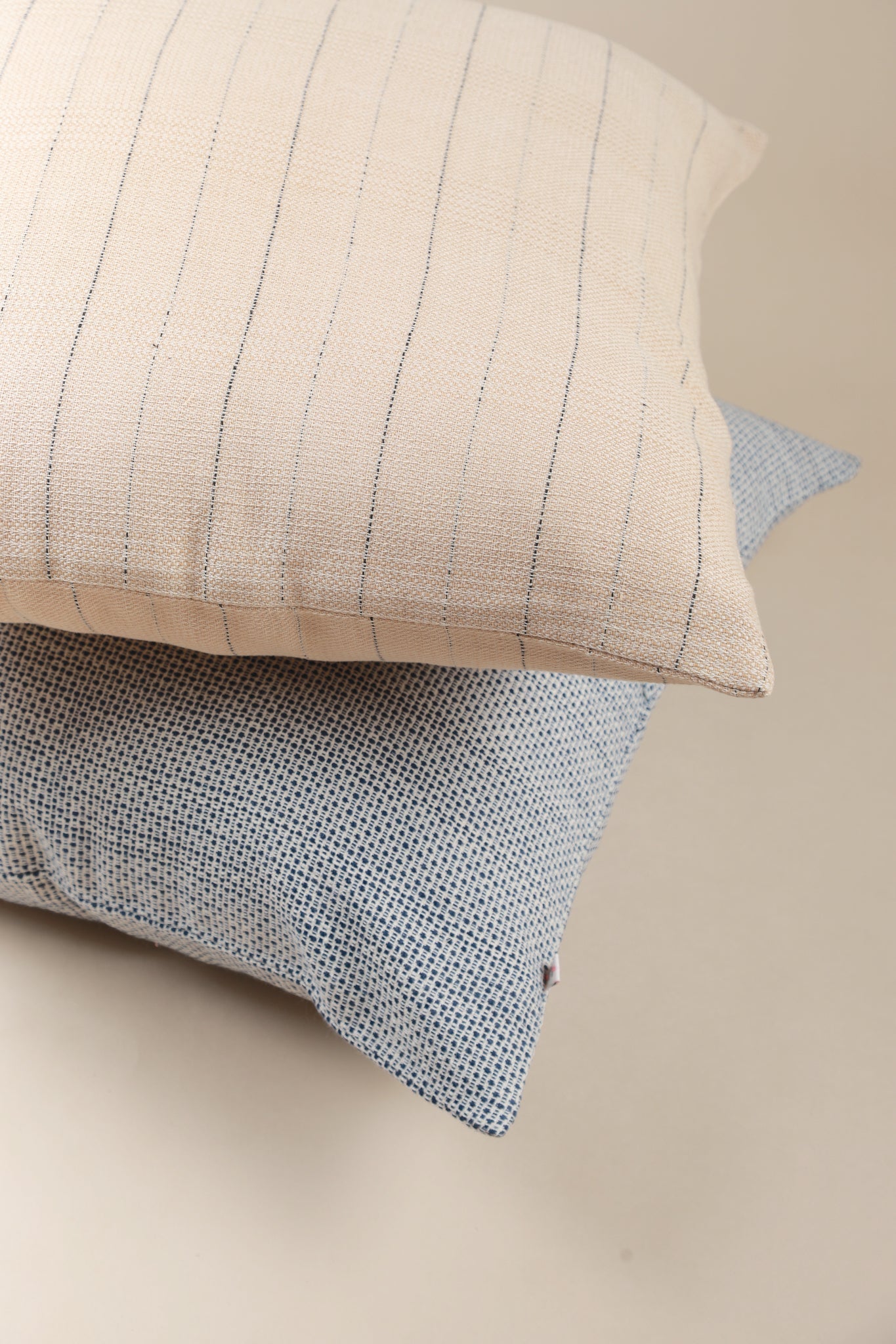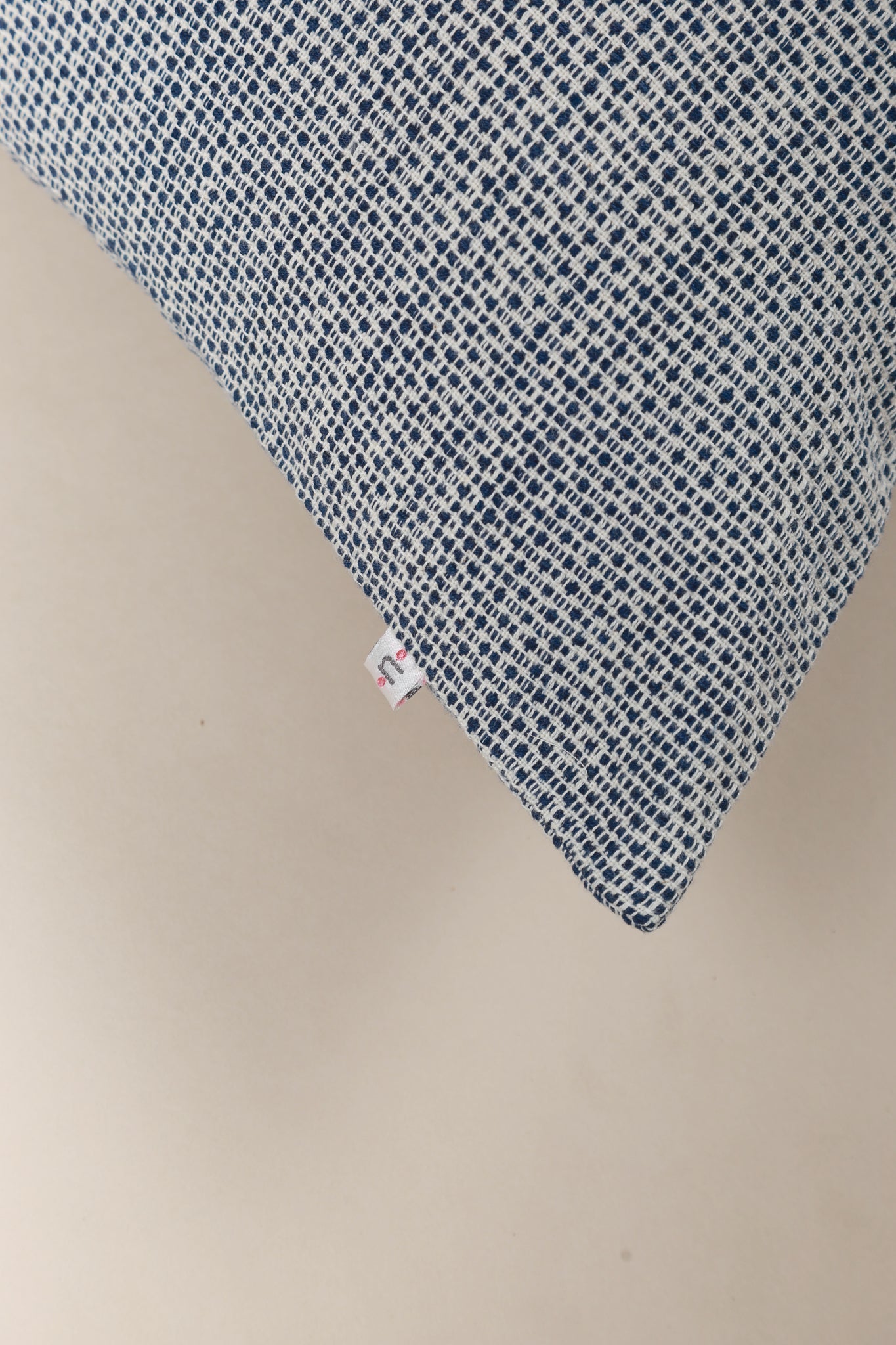 Enhance your home decor with our Ocean Breeze Handwoven Pillow. Featuring a blue and white checkered texture pattern this pillow is expertly crafted by skilled artisans using high-quality, handwoven fabric, making it perfect for adding a refined, sophisticated touch to any room.
