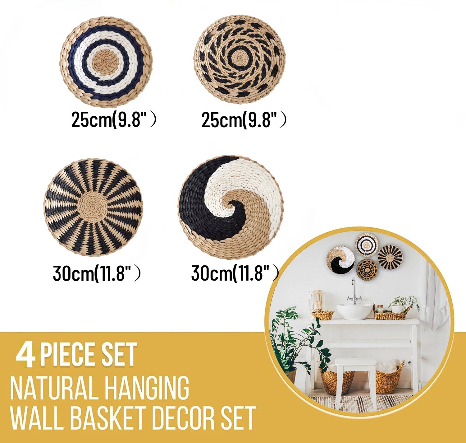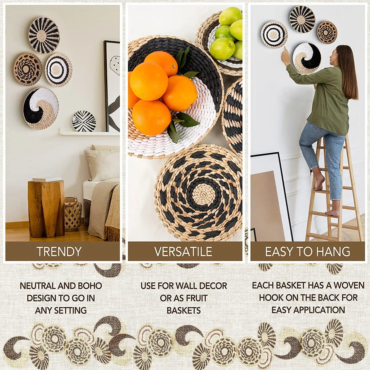 Straw Woven Wall Decoration Boho Rattan Wall Basket Decor Round Grass Weaving Ornament Rustic Seagrass Flat Hoom Hanging Crafts Fruit Bowl