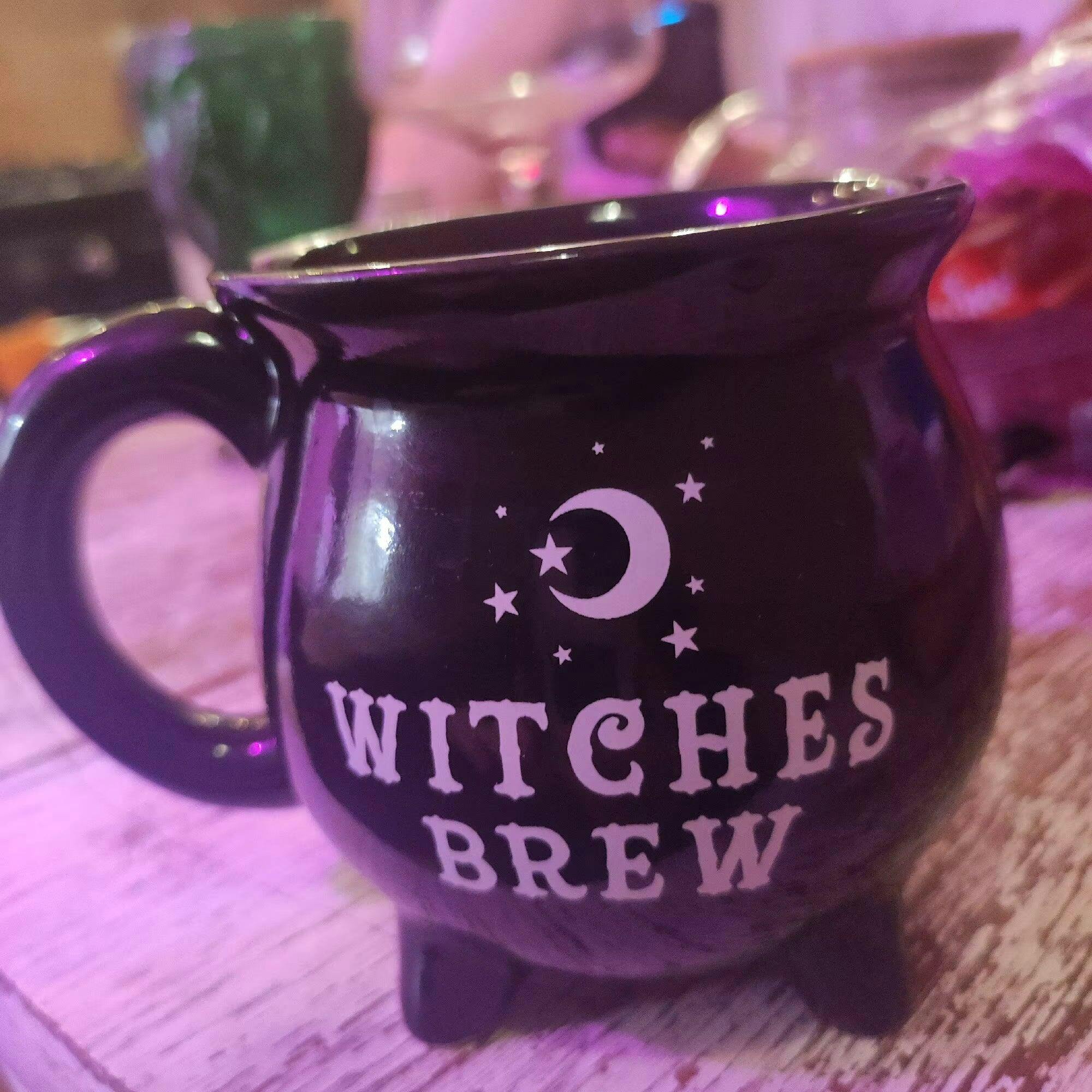 ☕ Design: Black ceramic cauldron with sturdy handle and legs